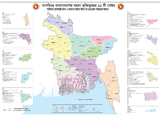 GIS Mapping of 11 Sectors and Genocide Site of the Bangladesh Liberation War