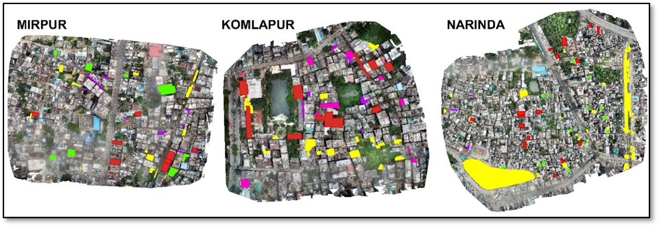 Identified solid waste disposal sites in Mirpur, Komlapur, and Narindaa